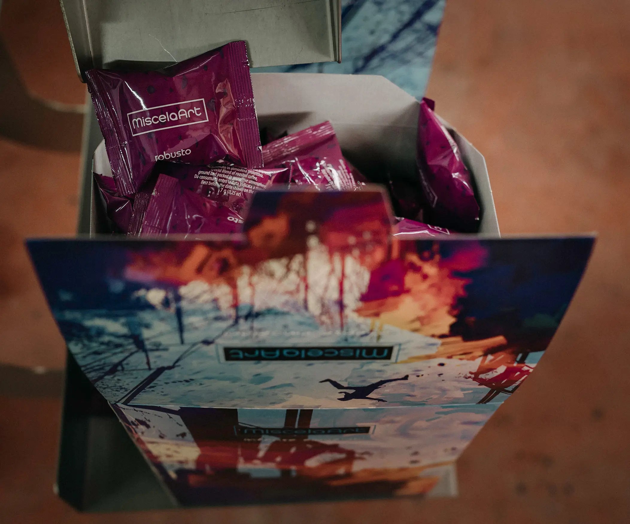La qualità del caffè, unita a un design ricercato e curato nel dettaglio, consente a MiscelaArt di essere un’azienda particolarmente innovativa ed evoluta nella produzione di cialde e capsule. L’obiettivo di MiscelaArt è quello di unire l’arte e il caffè, proponendo le varie miscele in confezioni innovative ed originali.